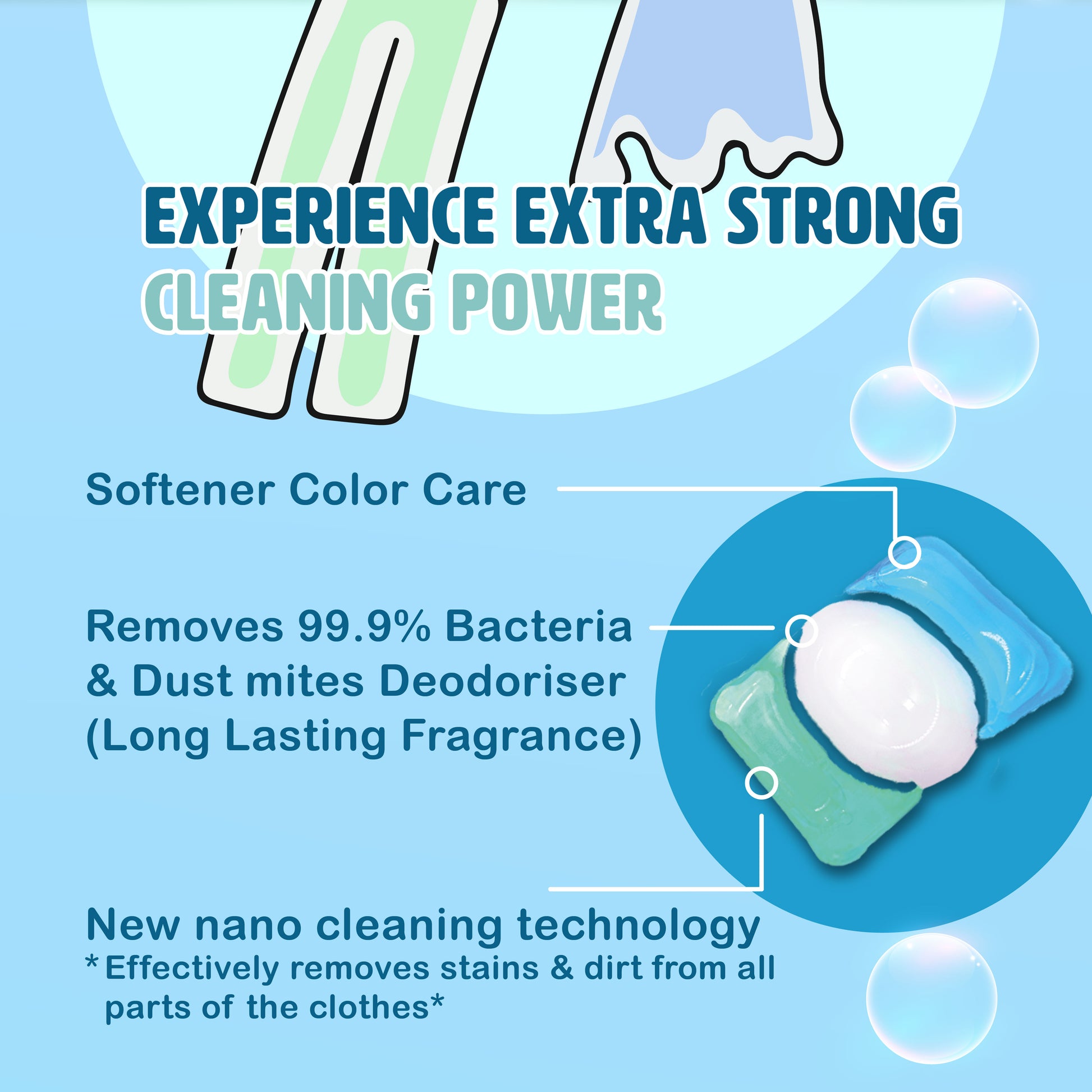 - First in Singapore: The only laundry capsule with 7 functions and 7 bio-enzymes, made in Japan.