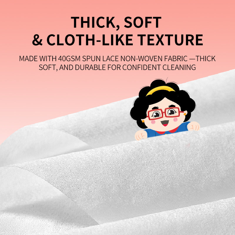 Gentle on the skin, these wipes provide a luxurious, soft feel while ensuring thorough cleaning.