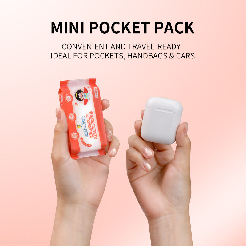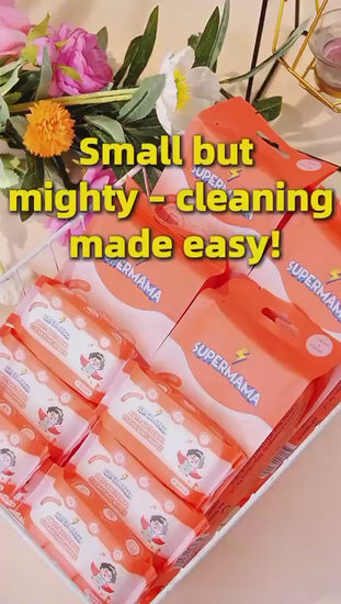 Introducing Supermama Plant-Based Anti-Bacterial Mini Wet Wipes. Delivering powerful antimicrobial protection without harsh chemicals. Each pack contains 56 individually wrapped sheets featuring a thick, cloth-like texture that cleans effectively while remaining gentle on delicate skin.